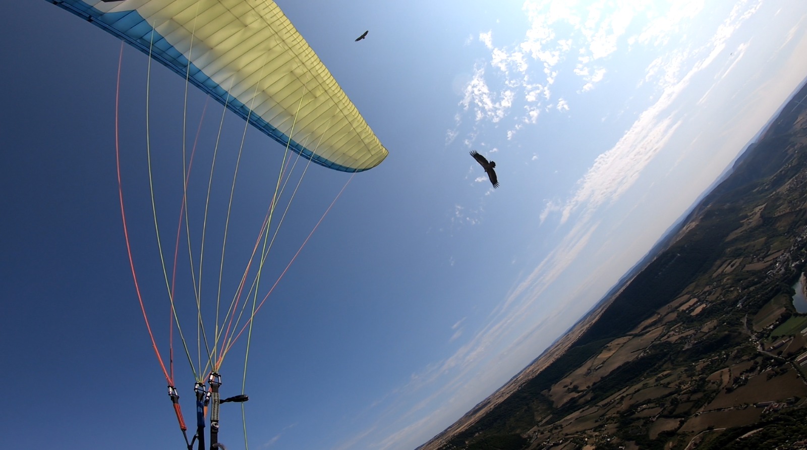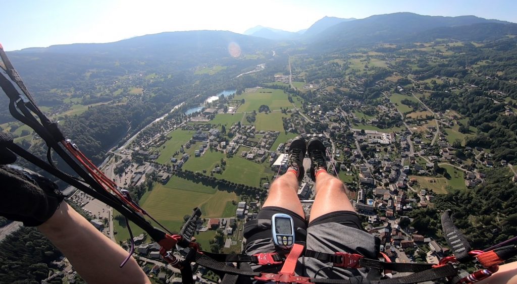 Lundi, un petit vent de nord soufflait. Avant de monter au décollage, nous passons en revue les atterrissages, notamment celui de Villefranche au nord, et celui de Séderon au sud. Nous avons décollé de Bergiès, pour un vol d’une heure avant l’arrivée des orages.